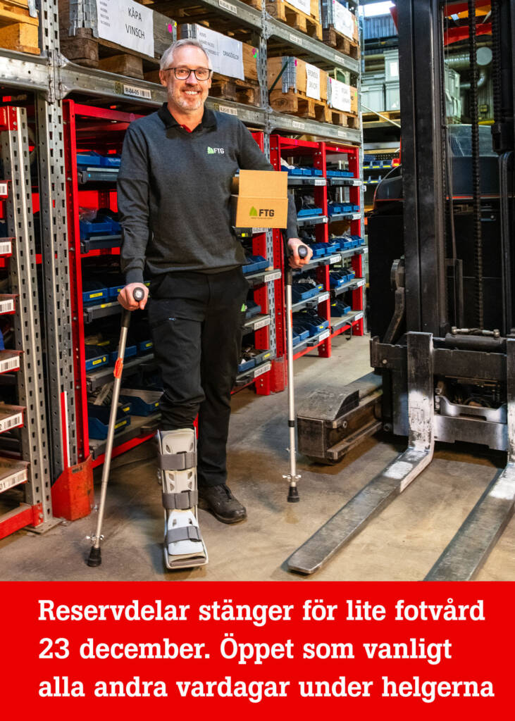 Personalen på reservdelar tar just nu det långa benet före så de kan vara lediga den 23 december för lite fotvård. I övrigt är det öppet alla vardagar under jul- och nyårshelgerna.